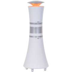 Doch grade durch diesen Aufsatz entsteht ein, will man dem Hersteller Glauben schenken, einmaliges Surround-Sound-Erlebnis. Damit ist allerdings kaum die Qualität bekannter 5.1-Systeme erreicht, die sich wohlgemerkt auch recht stilvoll in den Ecken eines jeden Raumes verstecken lassen. Mit Surround-Sound kann hier allenfalls eine Abgabe des Klangs gleichen Maßes in alle Richtungen gemeint sein und ob der Lautsprecher dann immer noch durch Stil glänzen kann, wenn er nicht wie eine Vase am Rande einer Fensterbank sondern mickrig und allein mitten im Raum steht, ist sehr fragwürdig.